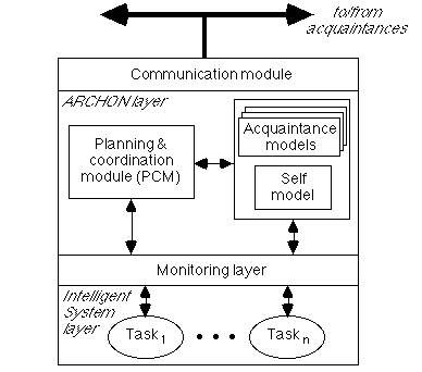 The ARCHON approach helps designers correctly decompose and package components of a MAS. The individual components of an ARCHON system are agents, which are autonomous and have their own problem solving abilities. Each agent is divided into two separate layers: the ARCHON Layer (AL) supports interaction and communication, while the Intelligent System layer (IS) provides domain level problem solving - the IS can be a KBS or some other type of information system. This is illustrated in Figure 1.